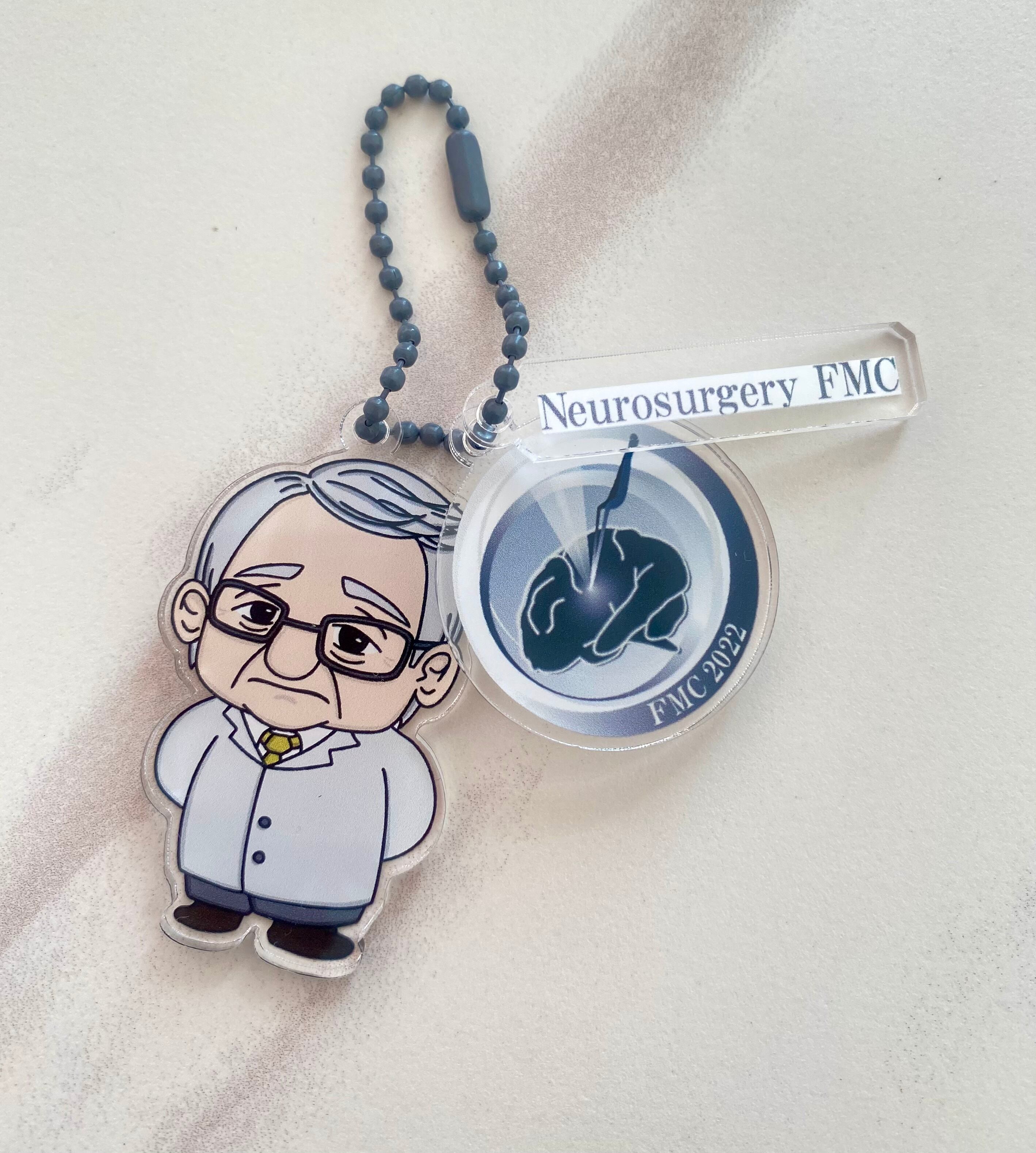 宮﨑先生のキャラクターに当院オリジナルロゴと院名を合わせたキーホルダーになっております。このキーホルダーは、アクリル素材を使用しており、デザインにこだわっています。